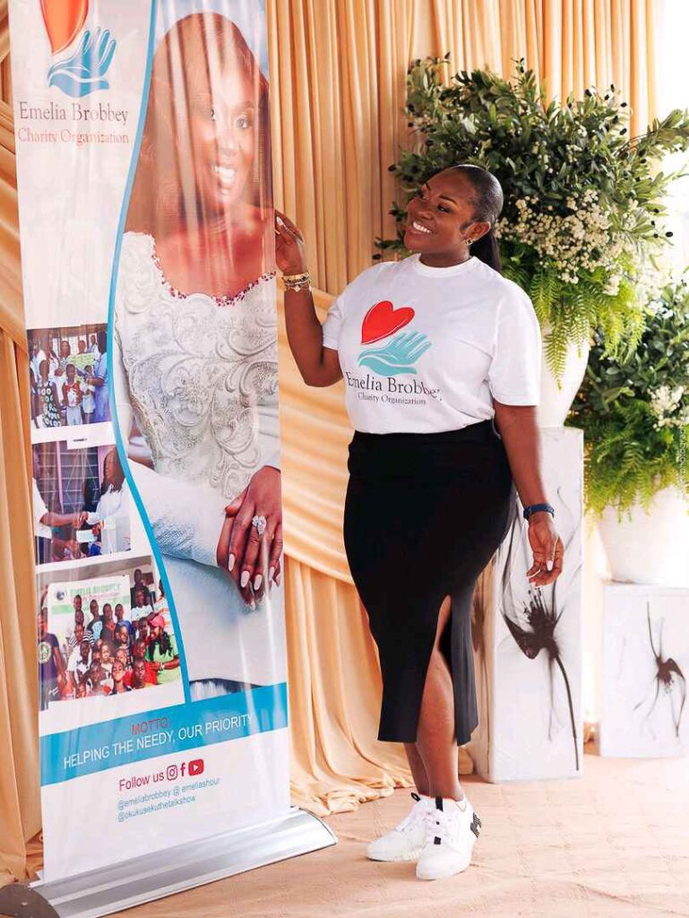 The Emelia Brobbey Foundation is a charitable organization established by Ghanaian actress, television presenter, and musician Emelia Brobbey in 2015. The foundation is dedicated to philanthropic efforts to improve the lives of underprivileged individuals, particularly children. Emelia Brobbey has been actively involved in various charitable activities through her foundation, demonstrating her commitment to social causes. From donating to Osu Children Home in Labone Accra, Cherubs Children’s Home in Kumasi, Yaw Hemaa Children Home in Brong Ahafo region of Ghana, Rima Ghana Children’s Home in Obuasi and finally Dinning and donating to Derby Bless Foundation